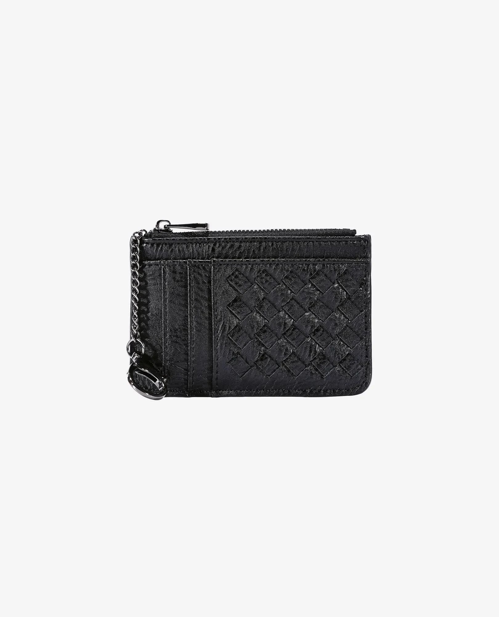 נרתיק לכרטיסי אשראי לנשים בעיצוב אלגנטי וקלוע. עשוי דמוי עור, עם סגירת רוכסן לאבטחת הכרטיסים. כולל שרשרת מתכת לתלייה נוחה היכולה לשמש גם כמחזיק מפתחות. מושלם לנשיאה יומיומית ושמירה על הכרטיסים בצורה מסודרת ובסטייל.