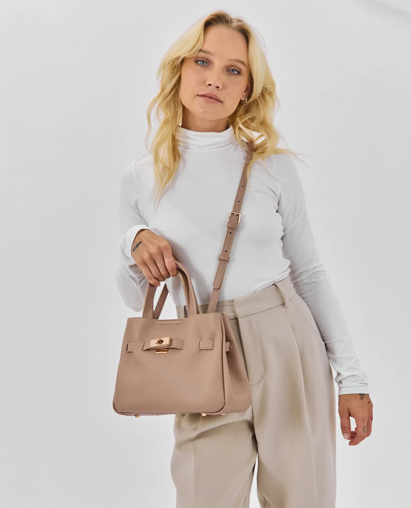 תיק צד מעוצב בגזרה מובנית עם קלפה ואבזם דקורטיבי שמוסיף טאץ' יוקרתי.