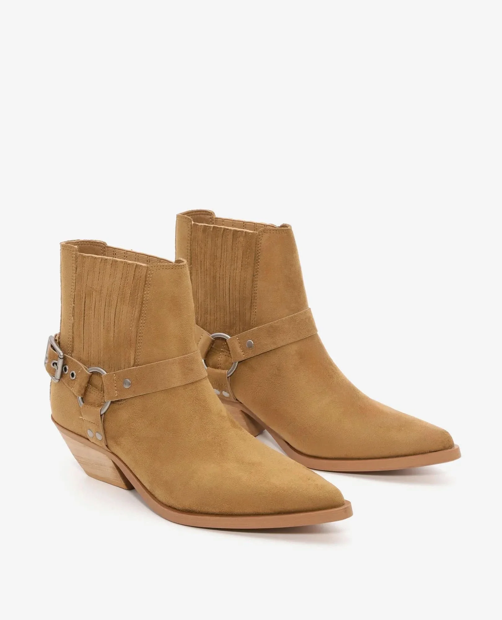 מגפוני בוקרים בסגנון רכיבה עם גומי בצדדים, רצועות וטבעת לעיטור ועקב בינוני. עיצוב על זמני שמתאים לכל שעה ביום. עשויים חומר דמוי עור,