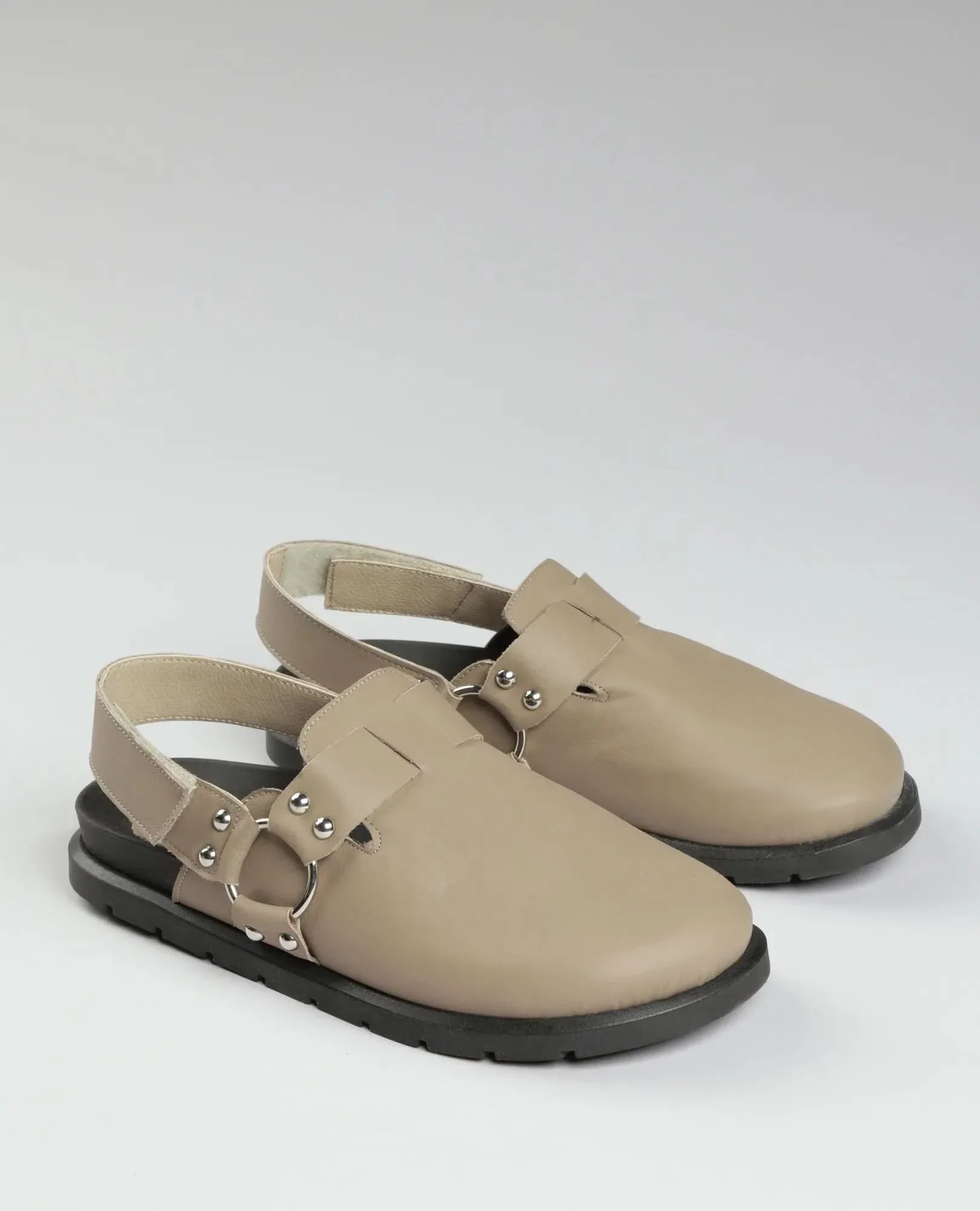 כפכפים בעיצוב סגור עם רצועות מתכווננות, טבעת דקורטיבית ורכיסת סקוץ' לנעילה מהירה.