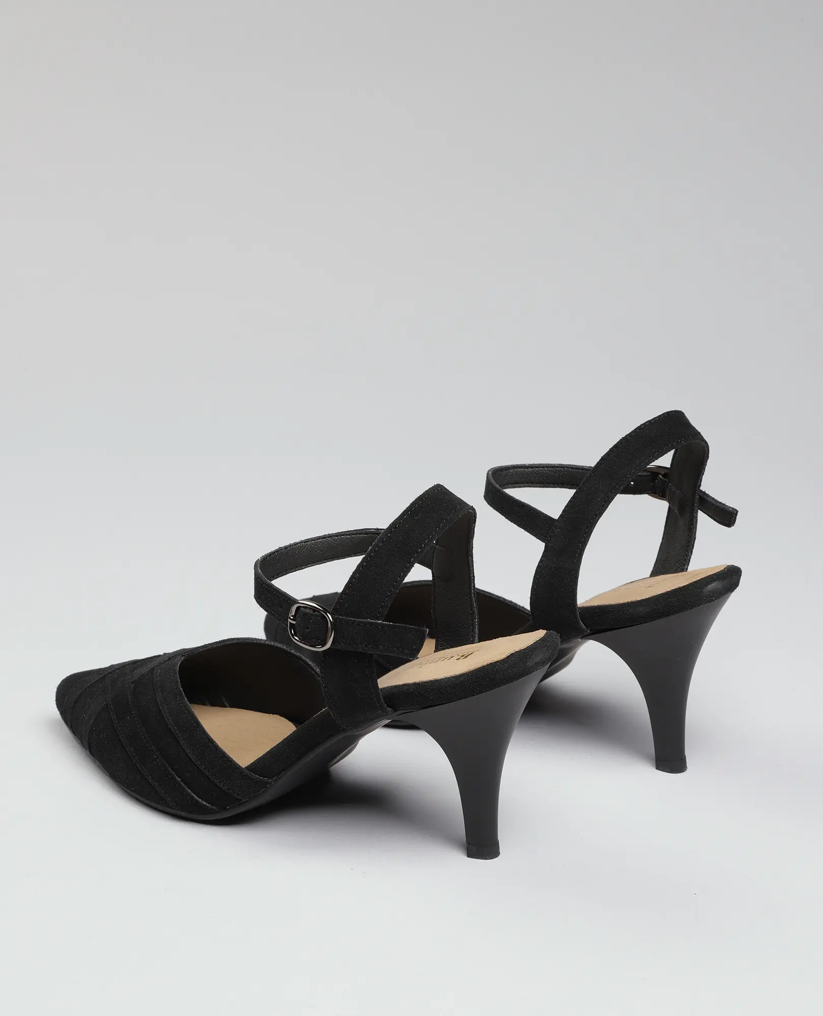נעלי עקב עשויות עור זמש איכותי, במראה נקי ומעודכן.