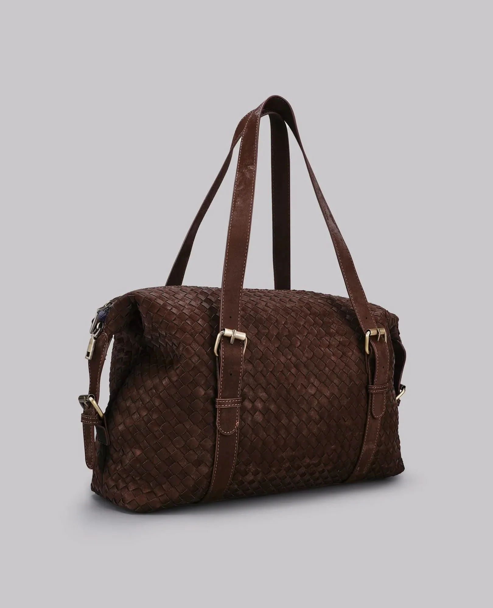 עשוי דמוי עור, עם ידיות נשיאה ארוכות וסגירת רוכסן עליונה ששומרת על הכול במקום.