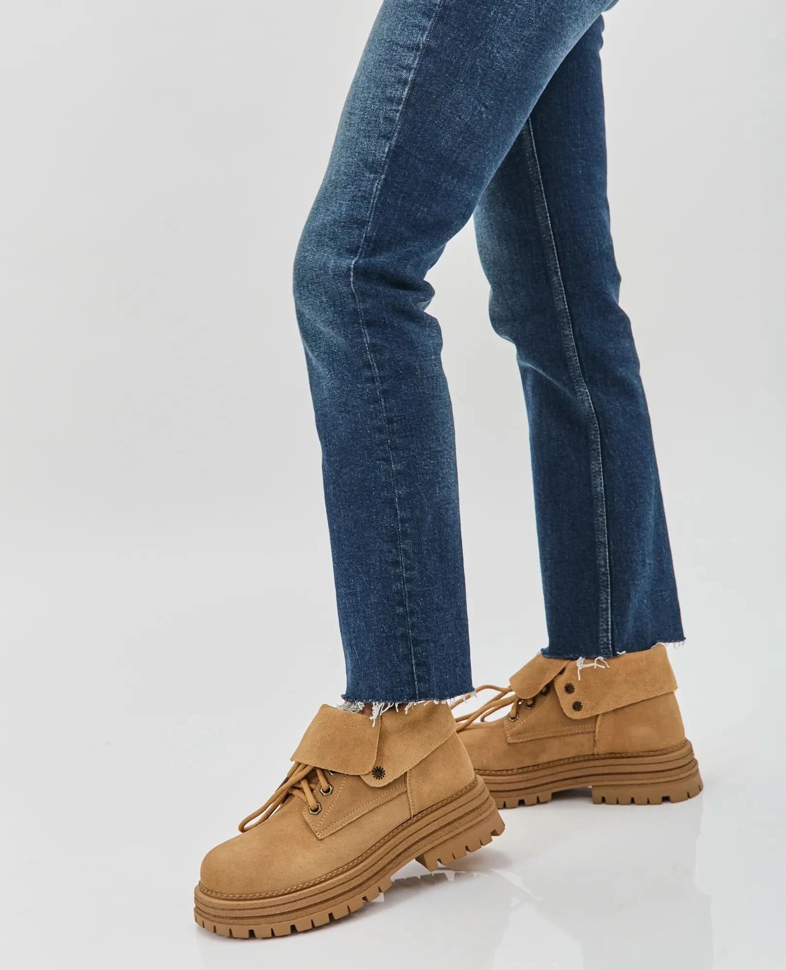 מגפונים שטוחים עשויים מדמוי זמש איכותי עם שרוכים קדמיים בולטים.