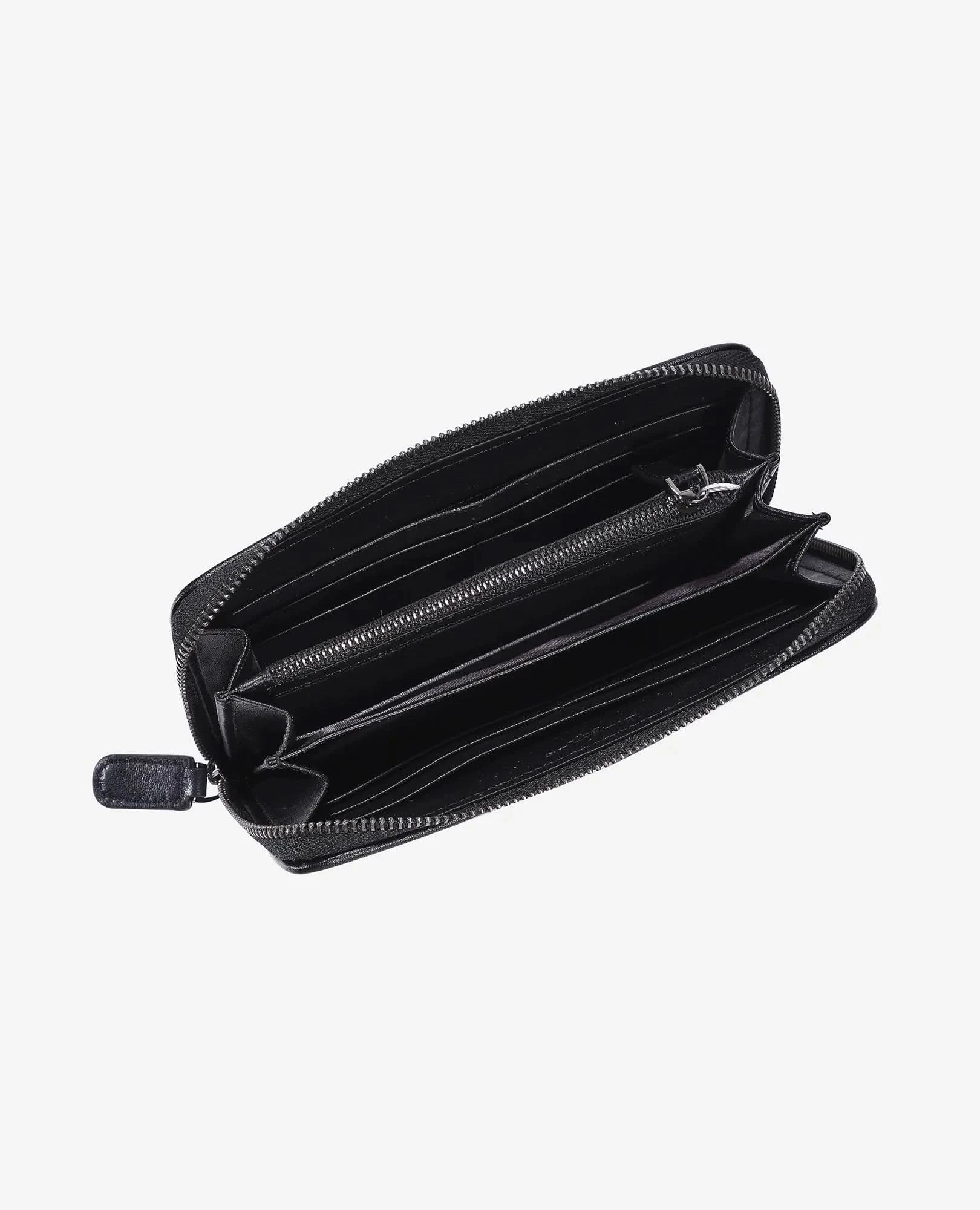 ארנק מלבני עשוי עור איכותי קלוע. לארנק 2 תאים לשטרות, הוא יכול להכיל עד 8 כרטיסים, וכולל תא ייעודי לשמירה על מטבעות הנסגר עם רוכסן.
