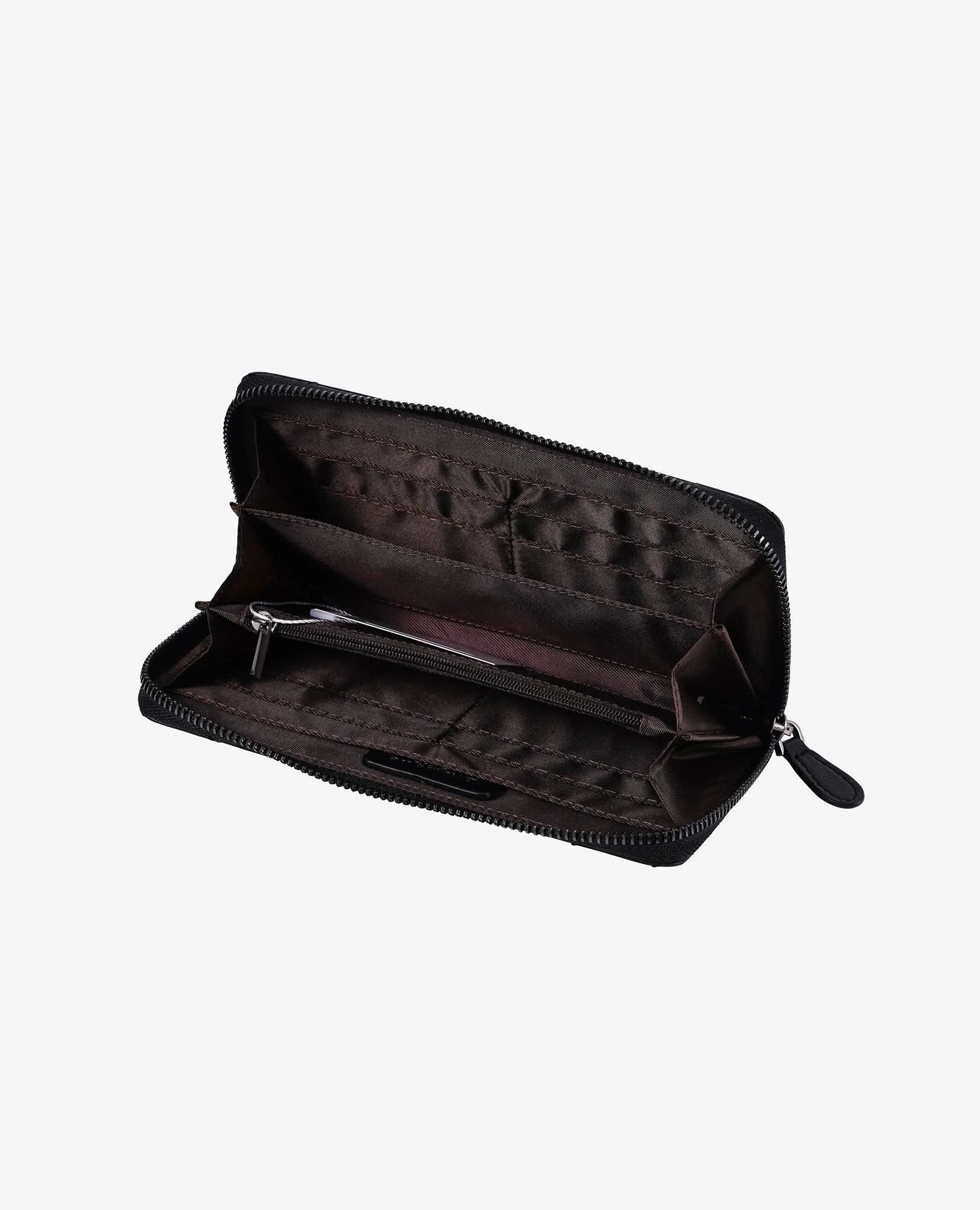 ארנק עור בדוגמת קווילט (קפיטונג’) עם סגירת רוכסן. חלוקה ל-3 תאים, רוכסן פנימי ומקום ל-12 כרטיסים.